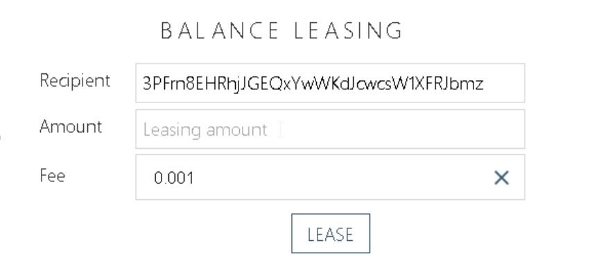 When the Waves coins are transferred to your wallet you can use the “Leasing” button to lease your Waves to the Mining nodes, basically to another Wallet. Here is a list of the Top Mining Nodes