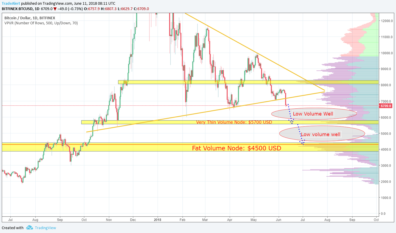 - If whales decide not to support the price at $5700, we could then plummet down another value node ($4500) where, judging by its size on the chart. I would expect much stronger support and possibly a bounce play.