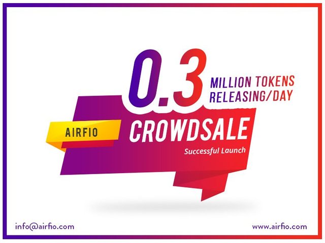Following the successful move of Pre-ICO on November 20, 2017, Airfio has launched its ICO on December 05, 2017 with massive crowd of investors. The event would continue for a month, commencing from December 05, 2017 and ending on January 03, 2018. The ARF coin value begins at $0.55, eventually increasing to $1.00 on the final day. There will be total of 09 Million tokens released during ICO wherein 0.3 Million tokens are set for sale everyday.