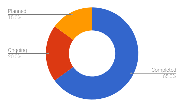 Out of these 100 projects, 65 have already completed their crowdsales, 20 are in the process of fundraising, and another 15 are planning their tokensales on Waves. ICObench has necessarily presented an incomplete list of projects that have issued or are going to issue tokens on Waves, so in reality there are more than 100 crowdsales on Waves.