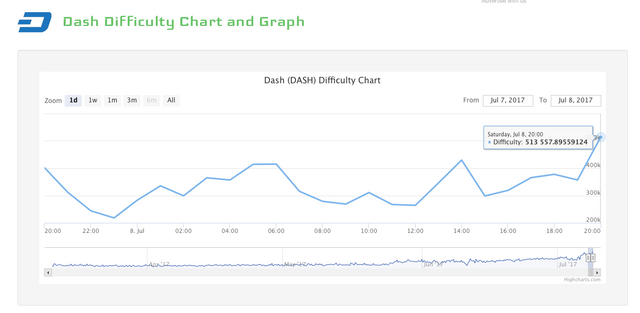 As most know DASH is my favourite Cryptocurrency out there, this is mainly based on how much hashing power I ave on Genesis Mining. I have around 2647 MH and cost me around 11K of my own money, when i first took out these contracts back in March this year the difficulty was low at 80k or around 3 TH, Last week since the mining contracts have been live on GM again the difficulty has rocketed to over double in the last week reaching over 10TH now or 500k.