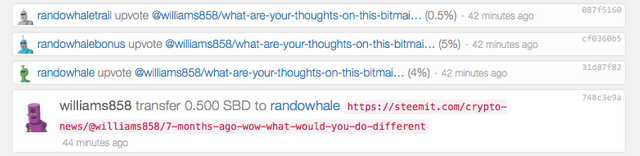 NOTE: Check if Randowhale is awake before voting as your funds will be refunded to you. Check on his page to see if he's sleeping or awake! Almost every time you will receive more than your 0.5 SBD. At times it can be tripple when his power is at a high level! there are no limits to how many times you can use, BUT only once per post!