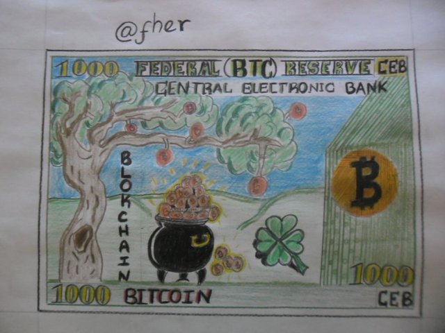 The design of my ticket is inspired by luck, I found a tree as a source that sprouts as fruits the cryptocurrency of bitcoin btc, these coins fall into a mined and glistening pot of this treasure and as a standard the 4 leaf clover in representation of the luck.