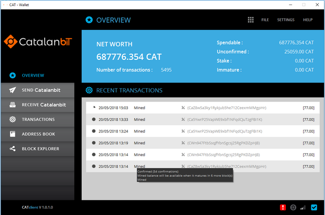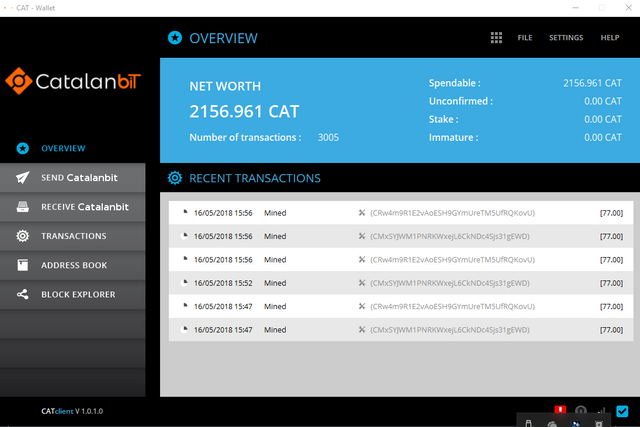 c.1.2.- Dejar abierto el programa y empezara a generar 77 Catalanbit.