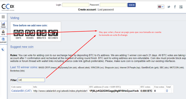 Exchange C-CEX, el intercambio de monedas en fase de votacion para que sea aceptada y comercializar.