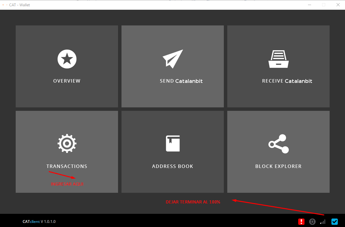 Descargar el archivo que contiene la instalación de la billetera en donde se guardaran las monedas de CatalanBit (CAT). Al estar instalada la billetera se puede iniciar la mineria en la computadora con sistema operativo Windows 7/8/10 de 64bits.