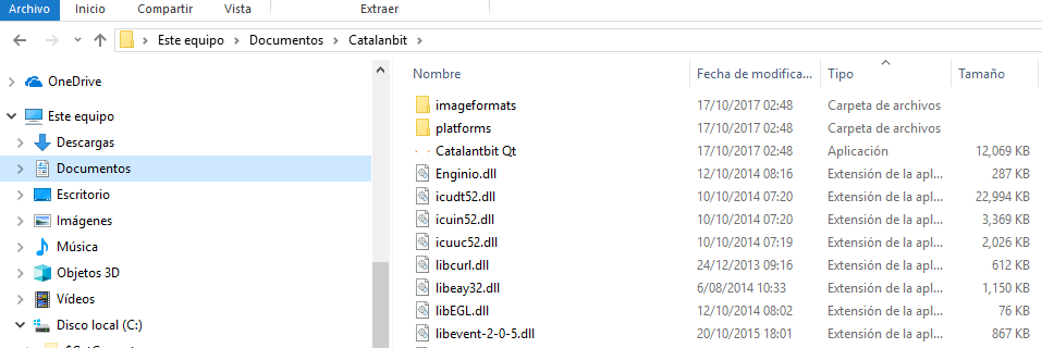 2.b.- Descomprimir el archivo Catalanbit-qt-win.zip los archivos se ven asi