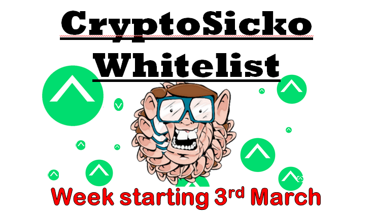 Hello CryptoSicko's - Here is this CryptoSicko Whitelist for week starting 3rd March 2019