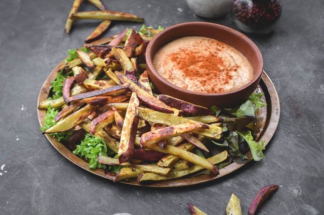 -=- Every time you invite people to your place does the question 'What can cook them?' cross your mind. Thinking in a tasty snack to offer to your guests doesn't have to be a problem. @gringalicious shares with us a delicious option to prepare when you decide to organize a reunion: baked sweet potato fries! And sriracha hummus to dip. Healthy, tasty and easy to make. Surprise your family and friends with this appetizing recipe @gringalicious has for us. -=-