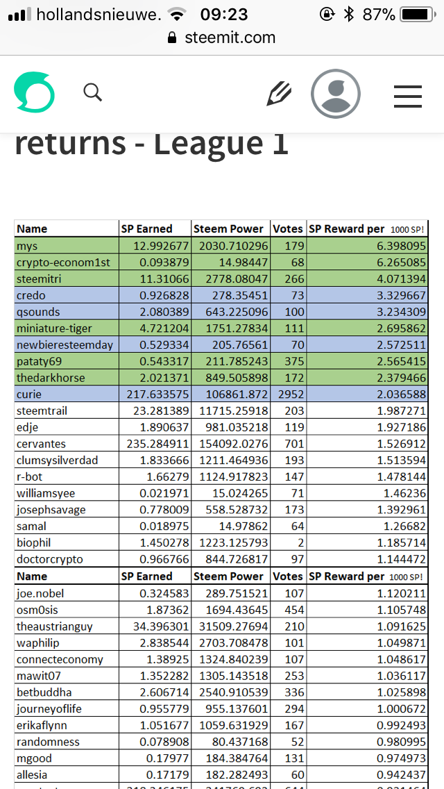 Last week I became second in the weekly curation league. For me it's really fun to earn as high as possible curation reward. As percentage of my SP I'm very good, that's why I became second. But in absolute terms I only earned 0.09SP.