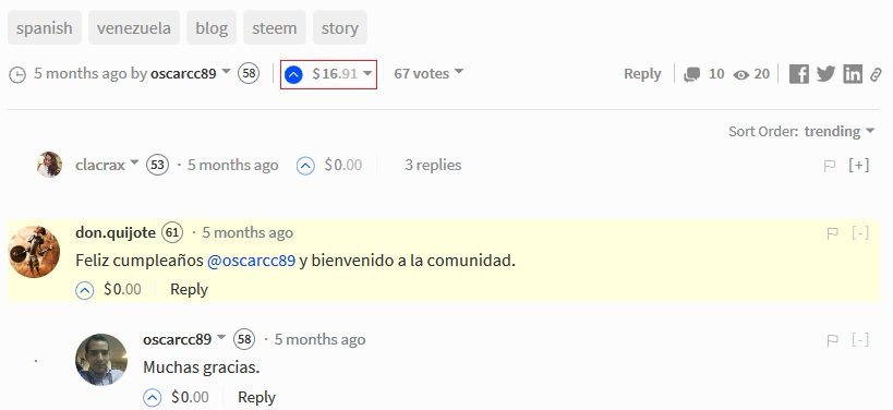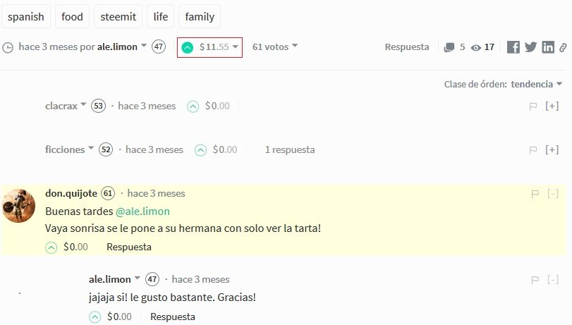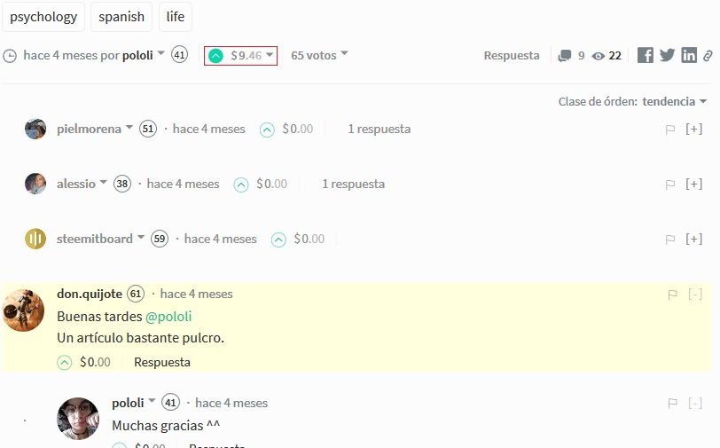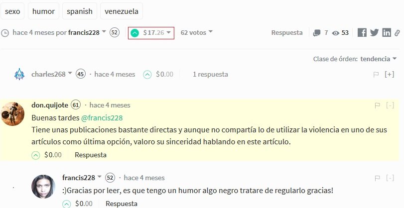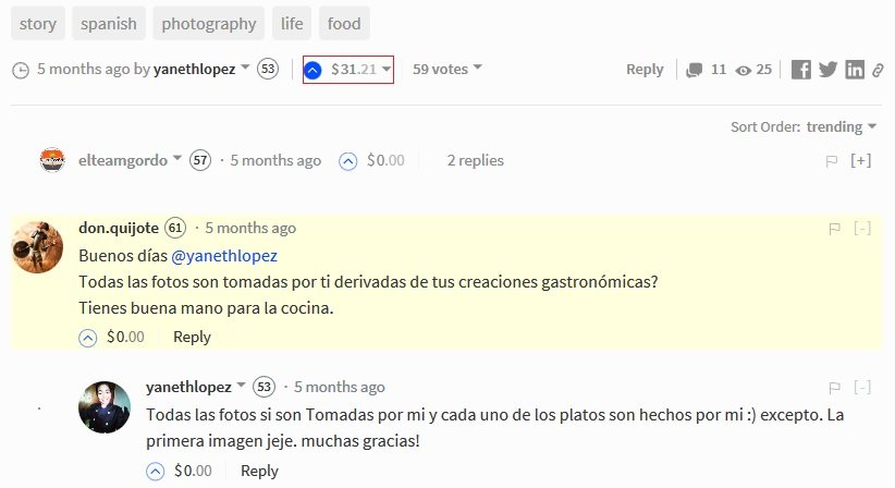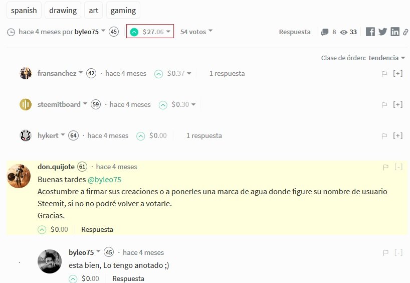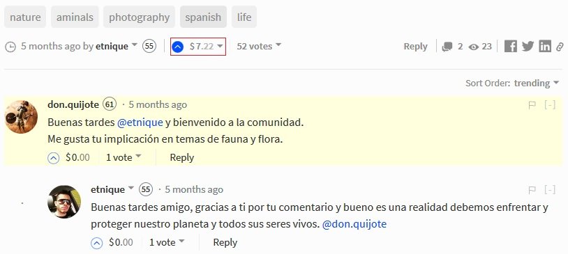 In almost all the screenshots that I bring you, you can see the personal comment of @don.quijote next to the clicked upvote arrow; I clarify that in those screenshots where the comment is not seen is not because it does not exist but because, given the amount of comments that were above mine, the screenshot did not cover enough below so that the vote and the comment couldn't be displayed in the same shot.