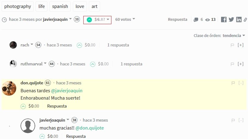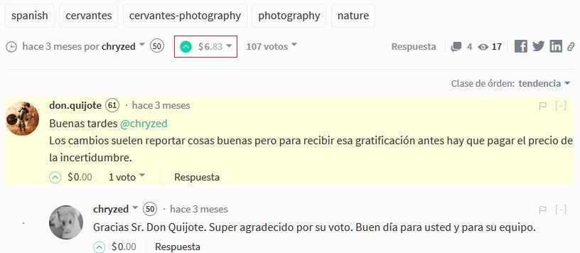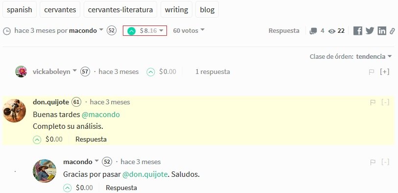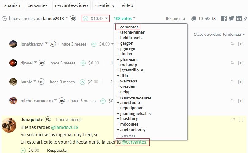 Finally, you will see some samples of how @don.quijote and the rest of the curator accounts, in their exercise of daily curation, serve as a direct bridge for the vote of @cervantes account.