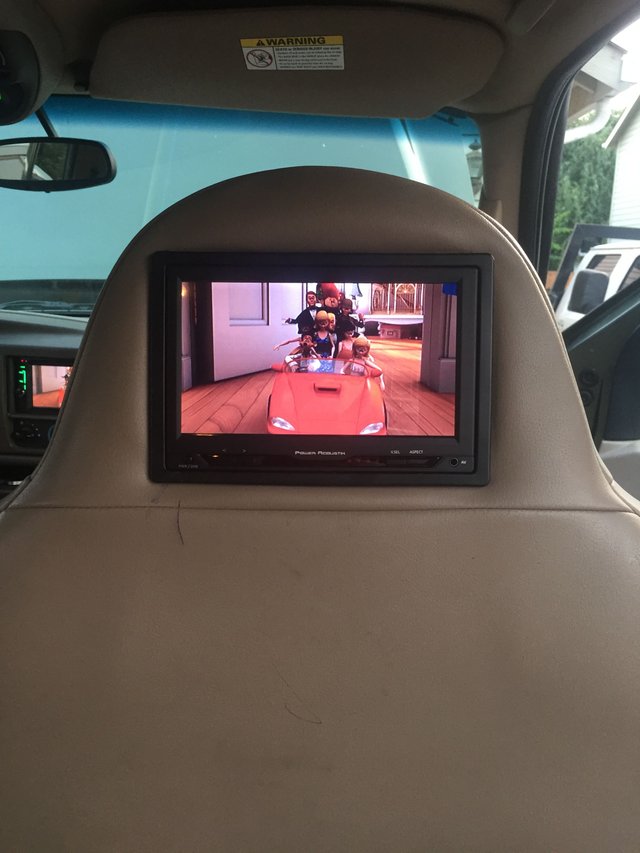 Let’s get the stir crazy kids a little entertainment in the back, by installing some TV monitors behind the front set of seats.