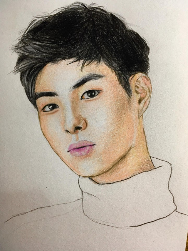 This is a step by step process illustrated portrait drawing of Korean Actor today, Jung Geonju.