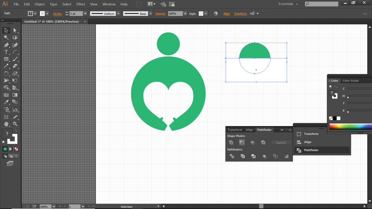 This logo had a simple start. I used the ellipse tool to form this humanoid shape.