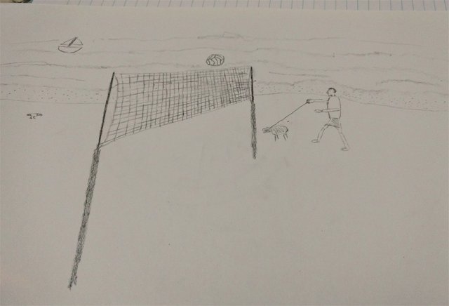Today's sketch is of a volleyball net at the beach with a ball flying over.