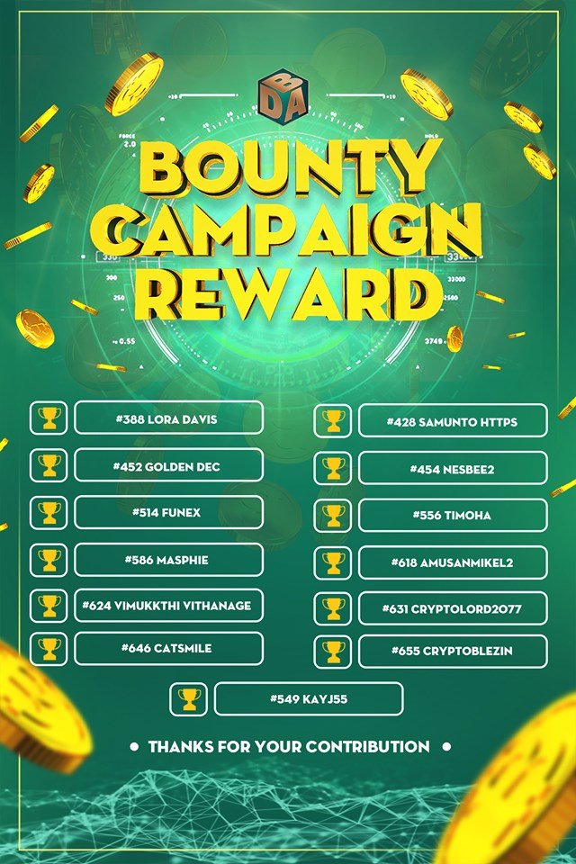 DABAKING in addition to providing entertainment games with confidentiality, anonymity, optimizing new experiences for the community, minimizing fraud at the lowest level, the award structure is extremely attractive. This is really a big and attractive playground and attracts many participants for investors in 2019.