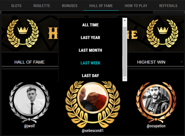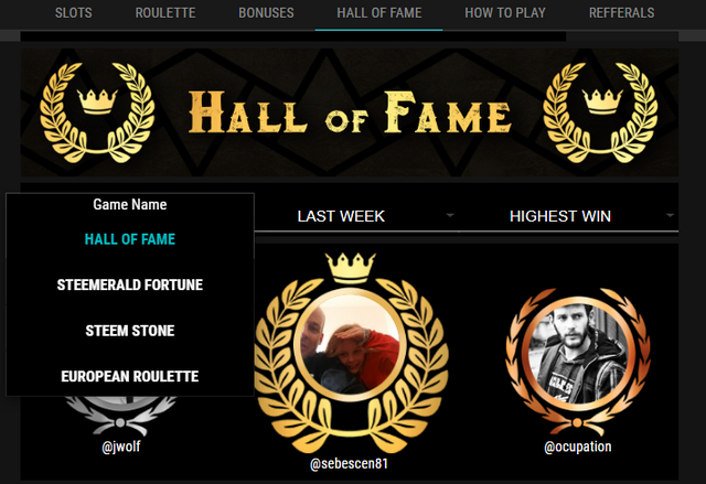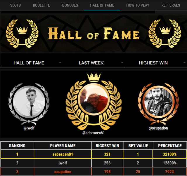 ๐ Take your place in HALL OF FAME tab! The new feature on SteemSlotGames.com is ready!