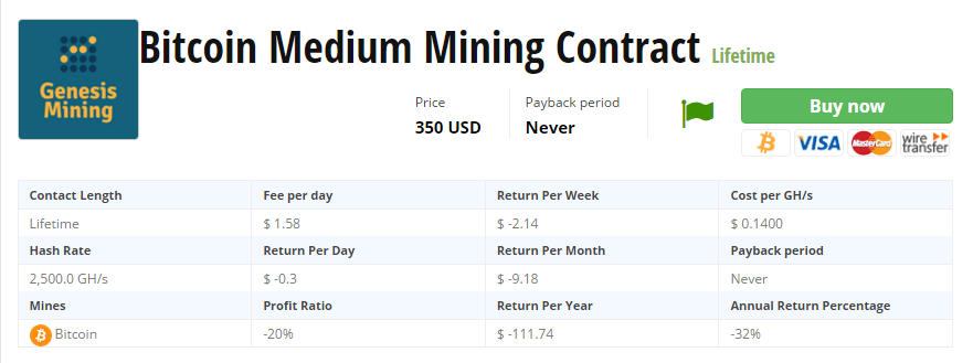 - Bitcoin Medium Mining Contract (Lifetime), 2.5 TH/s (350 USD):