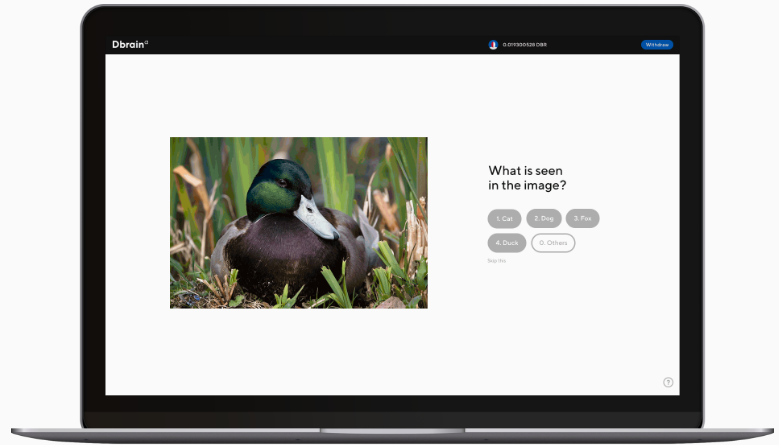 Siapa pun dengan perangkat yang terhubung dapat bergabung dengan Dbrain dan mendapatkan peran dalam membangun Industry 4.0. Platform kami menghubungkan permintaan yang meledak untuk data AI yang diberi label tangan dengan pasokan crowwareers global yang melimpah. Secara khusus, kami menjangkau 2 miliar orang yang tidak memiliki rekening bank di negara-negara berupah rendah, menawarkan mereka pendapatan cryptocurrency sebagai pertukaran untuk pelabelan data dan validasi. Mengintegrasikan tenaga kerja global ini ke dalam platformnya, Dbrain menyediakan infrastruktur yang aman dan terpadu untuk melengkapi bisnis melalui produk AI berkualitas tinggi yang dapat diakses.
