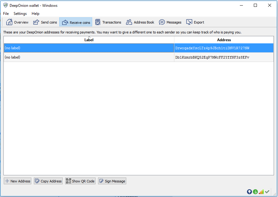 In this simple tutorial I will show you how to receive and send DeepOnion coins. At first you need the DeepOnion Wallet. In the download section on DeepOnion.org you will find for each operation system a Wallet Client. I highly recommend a desktop client. Avoid using third party software due increased thread for hacking attempts.