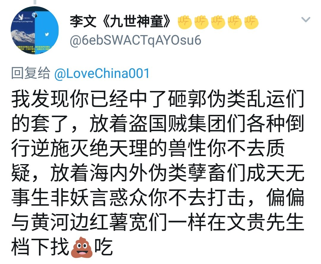 推特“郭蚂蚁+砸锅党”骂人汇总连载更新-005ddrk (36)in #democracy • 7 years ago (edited)郭文贵2018.12.29,路德访谈直播: 你看看什么人天天骂人家?外面欺民贼天天骂人,就三字经! 当你张开嘴天天骂三字经的时候,说明你已经失败了,因为你已经没有希望了。 从2018.12.30开始, 每天“郭蚂蚁+砸锅党”骂人汇总连载更新, 你们将被永久写入区块链! 1 2 3 4 5 6 7 8 9 10 11 12 13 14 15 #cn #politics #economics