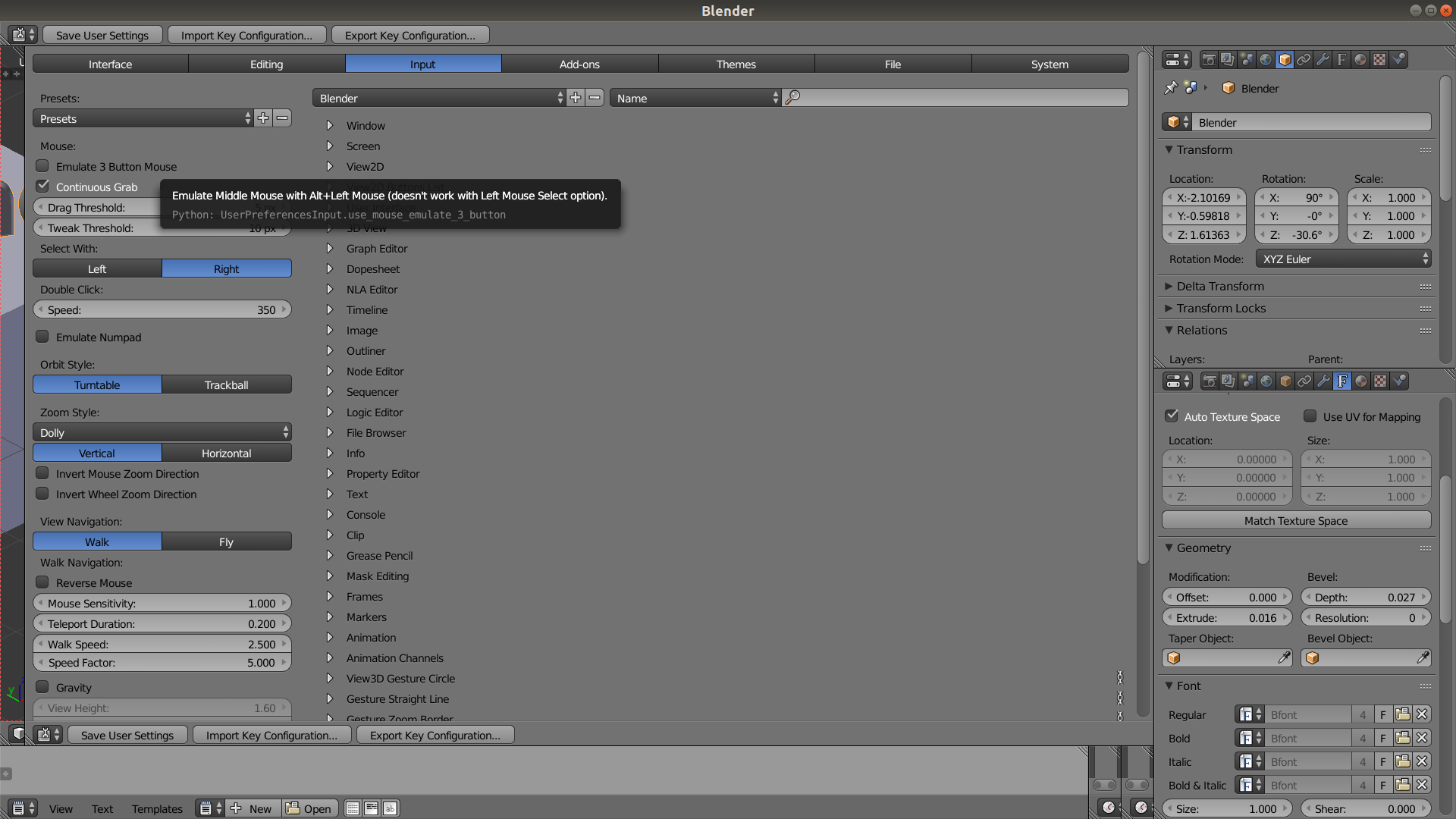 Also check out the preferences view, as a lot of the more annoying elements can be tweaked, right down to emulating a 3 button mouse or how the interface behaves. The preferences would also be where you can configure your hardware GPU.