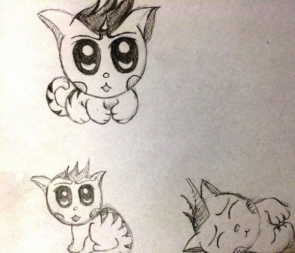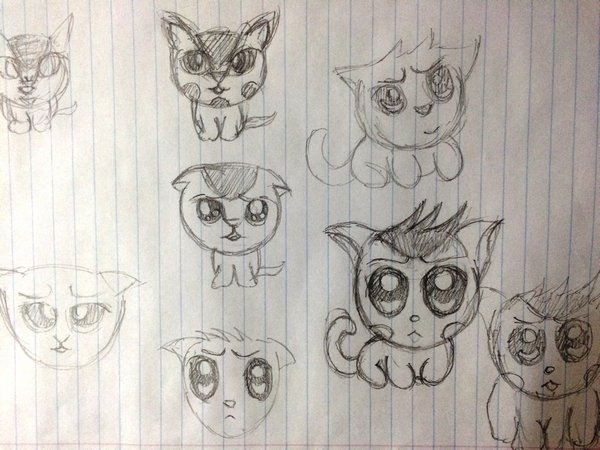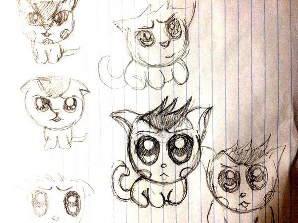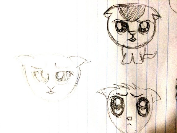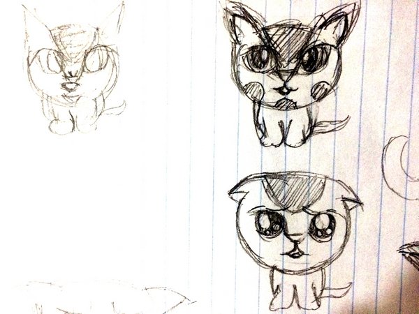 Then I chose the cat that I preferred and began drawing a more detailed drawing