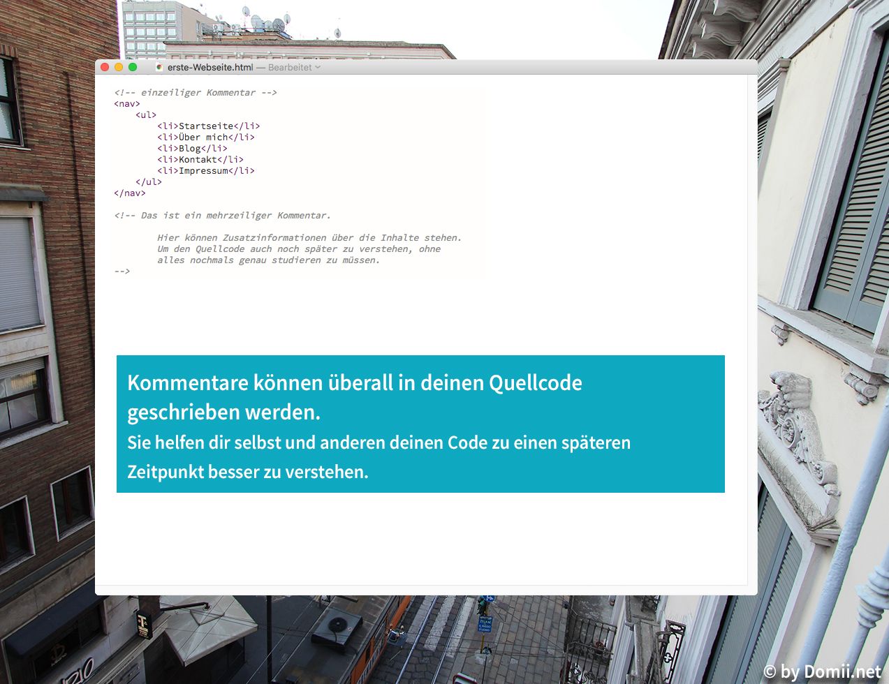 Ich hoffe, dass dir Kommentare klar sind. Sie sind nicht zwingend notwendig, jedoch können sie zur Verständnishilfe/Gedächtnisstützen zusätzlich verwendet werden.Auf der normalen Webseite sieht man die Kommentare natürlich nicht!