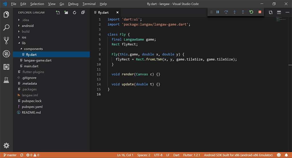 So go ahead and create a file named ./lib/langaw-game.dart. In this file let’s write the following code: