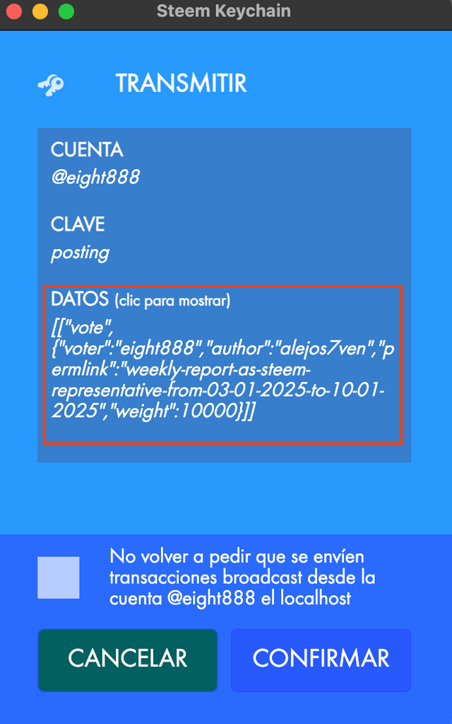 In the blue part I got the data using JQuery, and I made the necessary conversions, in the case of the weight of the vote it cannot be greater than 100 or less than 0, and once the limits are established this value is multiplied by 100 since it is expressed at the level of the blockchain. I used the function I created previously and obtained the two necessary values from the post we are going to vote on.