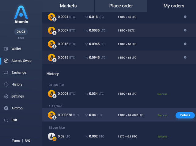 Atomic Swaps is a convenient technology! I can exchange cryptocurrencies without third parties.