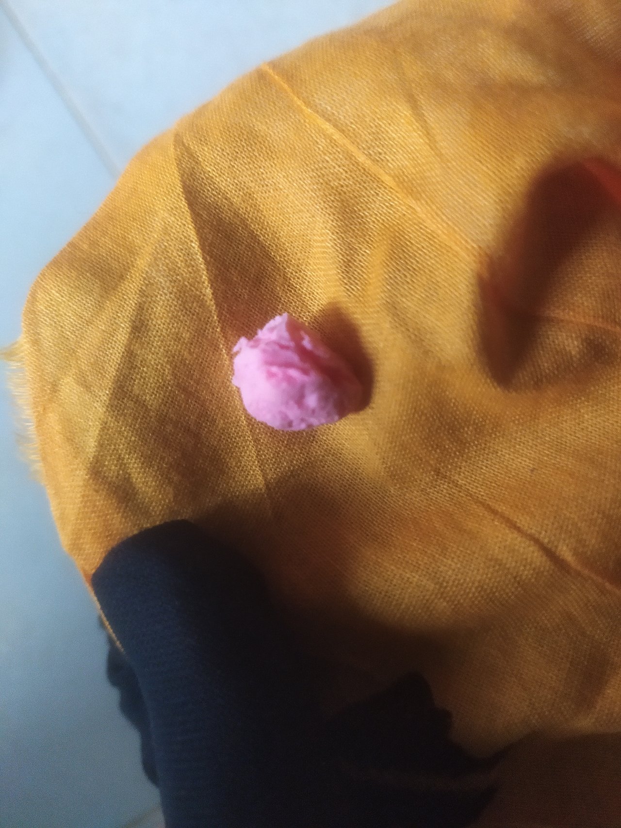 এ পর্যায়ে ফুলের গর্ব মুন্ড বা ফুলের বোটা তৈরি করার জন্য একটি হলুদ কাপড় নিয়ে নিলাম। আমার মেয়ের জামা বানানোর পরে কিছুটা টুকরা রয়ে গিয়েছিল। যেটা দিয়প কোন কাজ করা যাবে না। সেই কাপড়ের মাঝখানে ছোট করে কেটে নেওয়া শুকনো ক্লে দিলাম। ক্লেটা কাপড়ের মাঝখানে রেখে ভালোভাবে মুড়িয়ে নিলাম।
