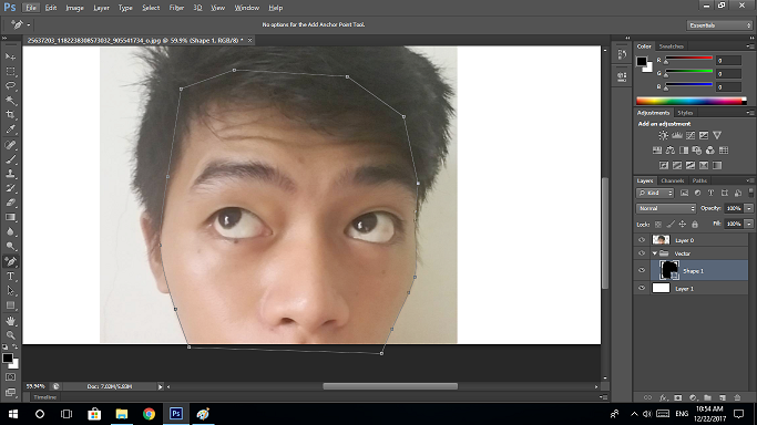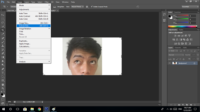 2. (Optional) Since I want to use this vector art as my profile picture, I wanted only some parts of my face so I cropped the photo using the Crop Tool from the Tool Palettes and selecting only the desired areas. I readjusted my canvas since the photo has little space to work with by clicking Image > Canvas Size and set my new canvas size (refer to image below).