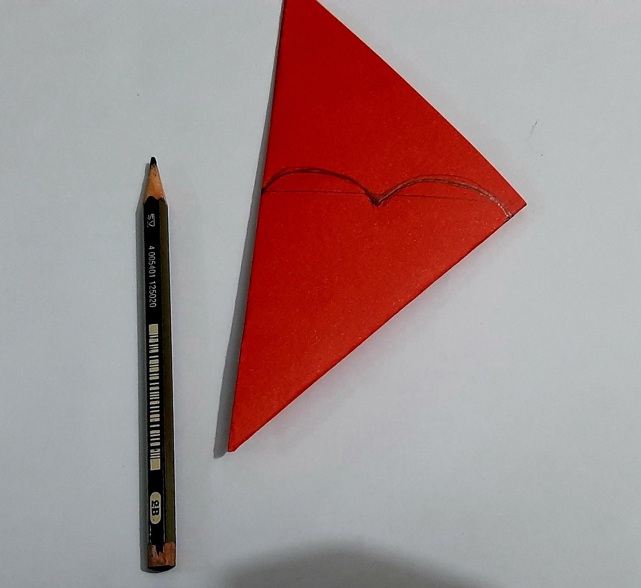 প্রথমে রঙিন কাগজটি ৮.৫ ইঞ্চি করে কেটে নিতে হবে।তারপর কাগজটি ৩ ভাজ করে পেন্সিল দিয়ে ছবির মতো লাভ আঁকিয়ে নিতে হবে।