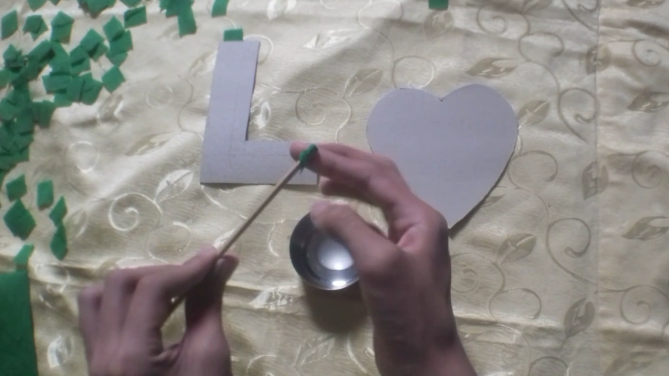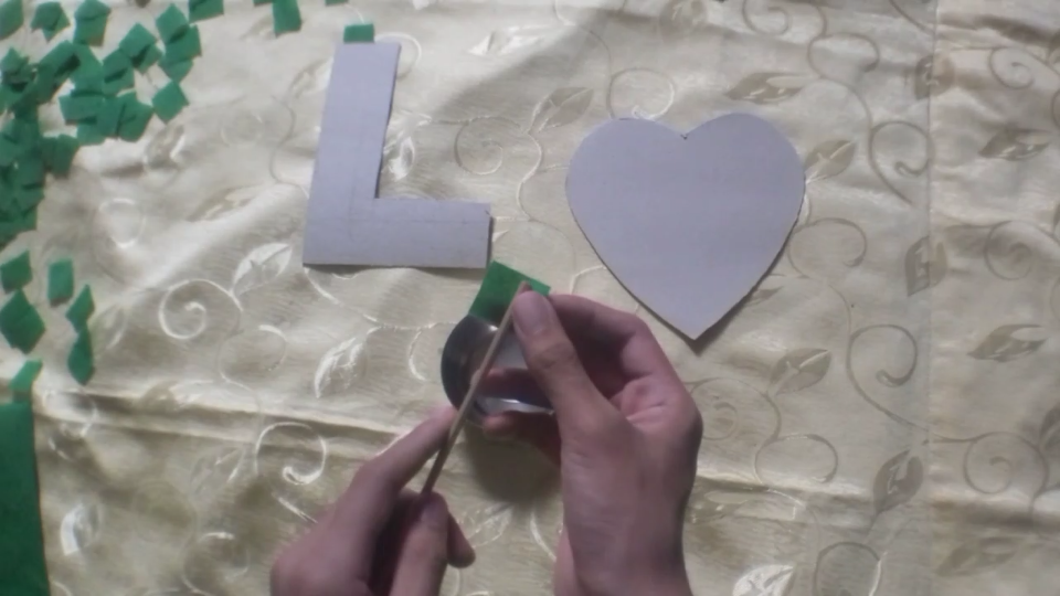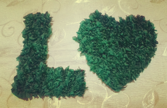 4.) Repeat no. 3 until your letter, shape or number is filled with crepe paper