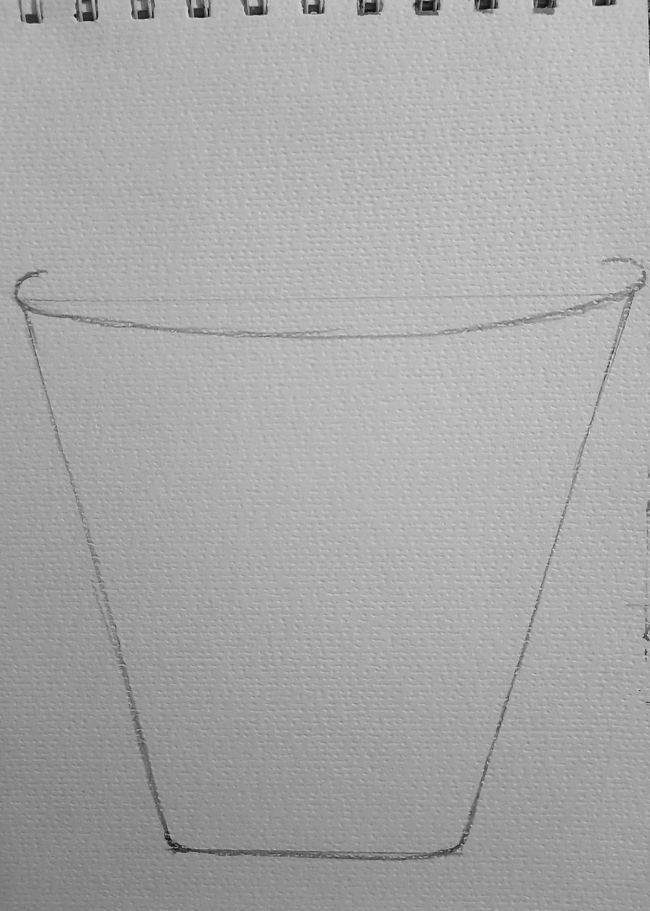প্রথমে পেন্সিলের সাহায্যে একটি ফুড বক্স এর অবয়ব ভালোভাবে অঙ্কন করে নিলাম। প্রথমে স্কেল দিয়ে দাগ টেনে নিলাম। এরপর হাত দিয়ে শেইপ করে নিলাম।