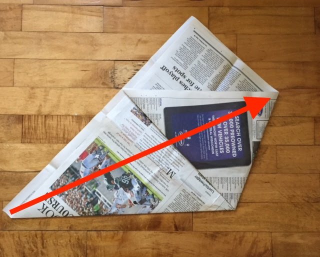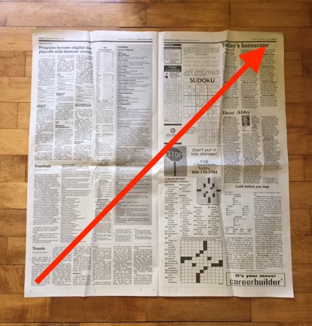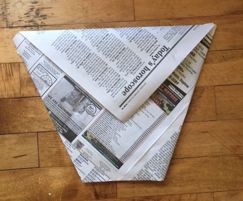 - Fold the newspaper in half from corner to corner in order to create a triangle.