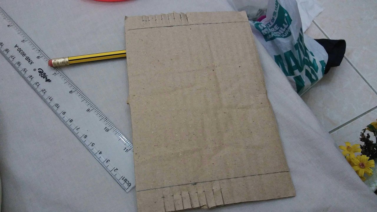 - Measure and draw a line about one inch at the edge of the cardboard on both opposite sides. (This will serve as your guide point.)