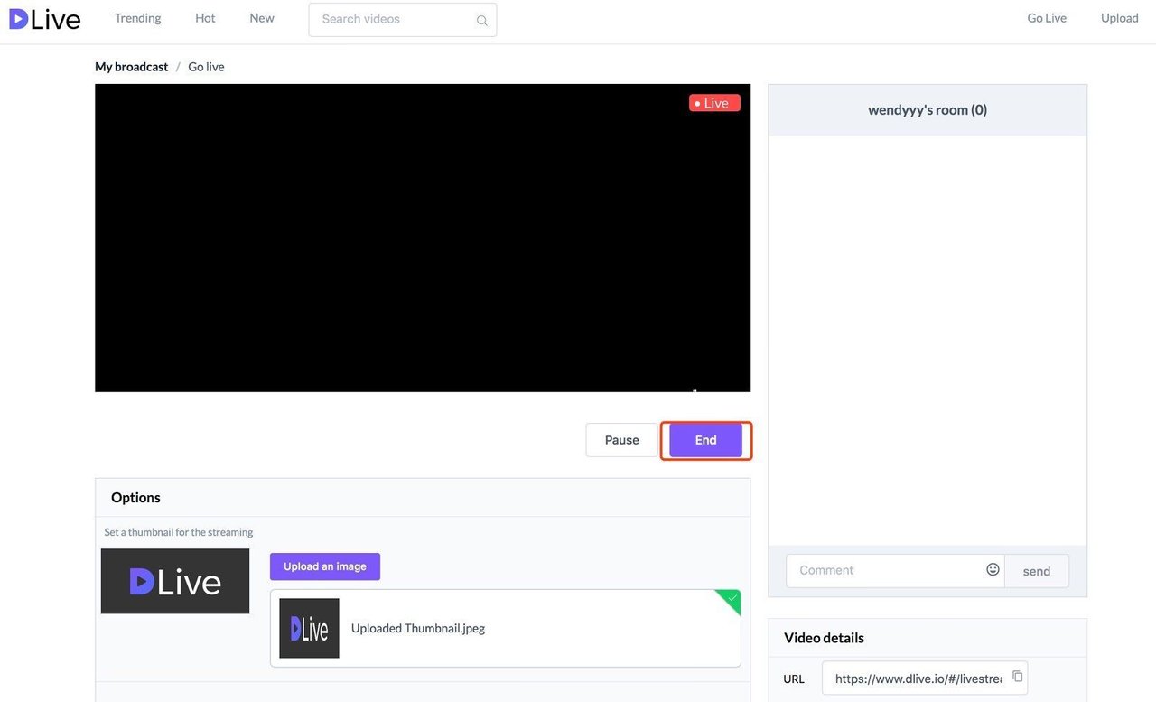 7.After the broadcast, you can press end to end the video section, and you can download it later.