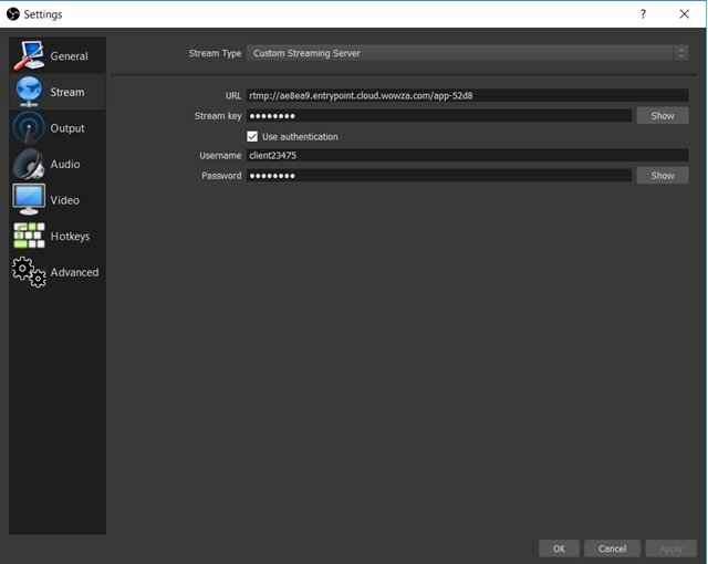 Stream - Stream Type and make sure you select Custom Streaming Server