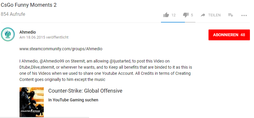 Back then I used to share a Youtube Account with @Ahmedio99 and he allowed me to upload this Video on Dtube as you see in the videodescription