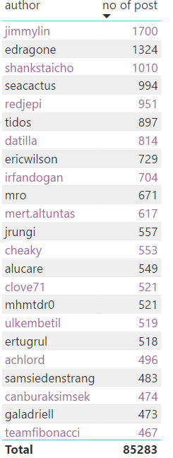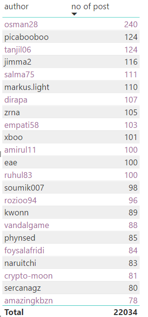 Using PowerBI, I have connected to the SteemSQL database (paid subscription service held and managed by @arcange). You can find full details of the query used at the bottom of the article
