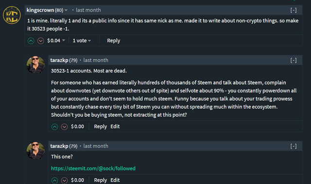 You are viewing a single comment's thread from:RE: Where are the downvotes (SP) going?View the full contextView the direct parenttarazkp (80)in #downvotes • 6 years ago (edited)When asked about his alts: I didn't get another reply.