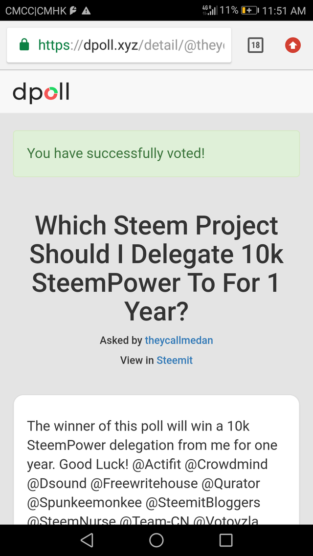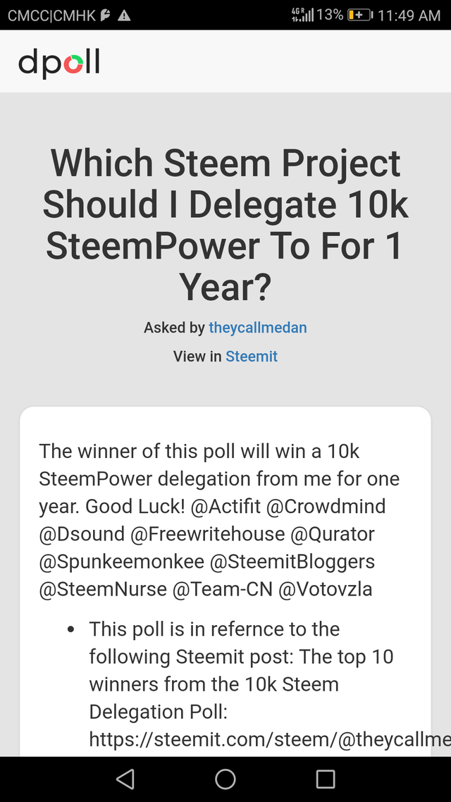 一。點擊以下連結,進入投票版: https://dpoll.xyz/detail/@theycallmedan/which-steem-project-should-i-delegate-10k-steempower-to-for-1-year/
