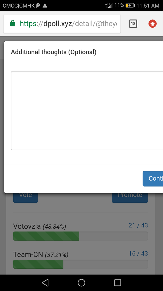 按下投票Vote後,會彈出一個介面,可不打任何文字,直接按繼續 「Continue」