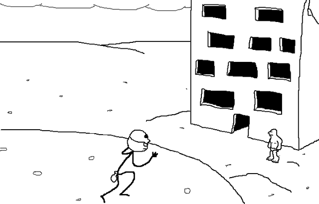 Our hero needs to go inside and to do that the obstacles standing needs to go now he has two options he can either choose to distract it or find a way to kill it.