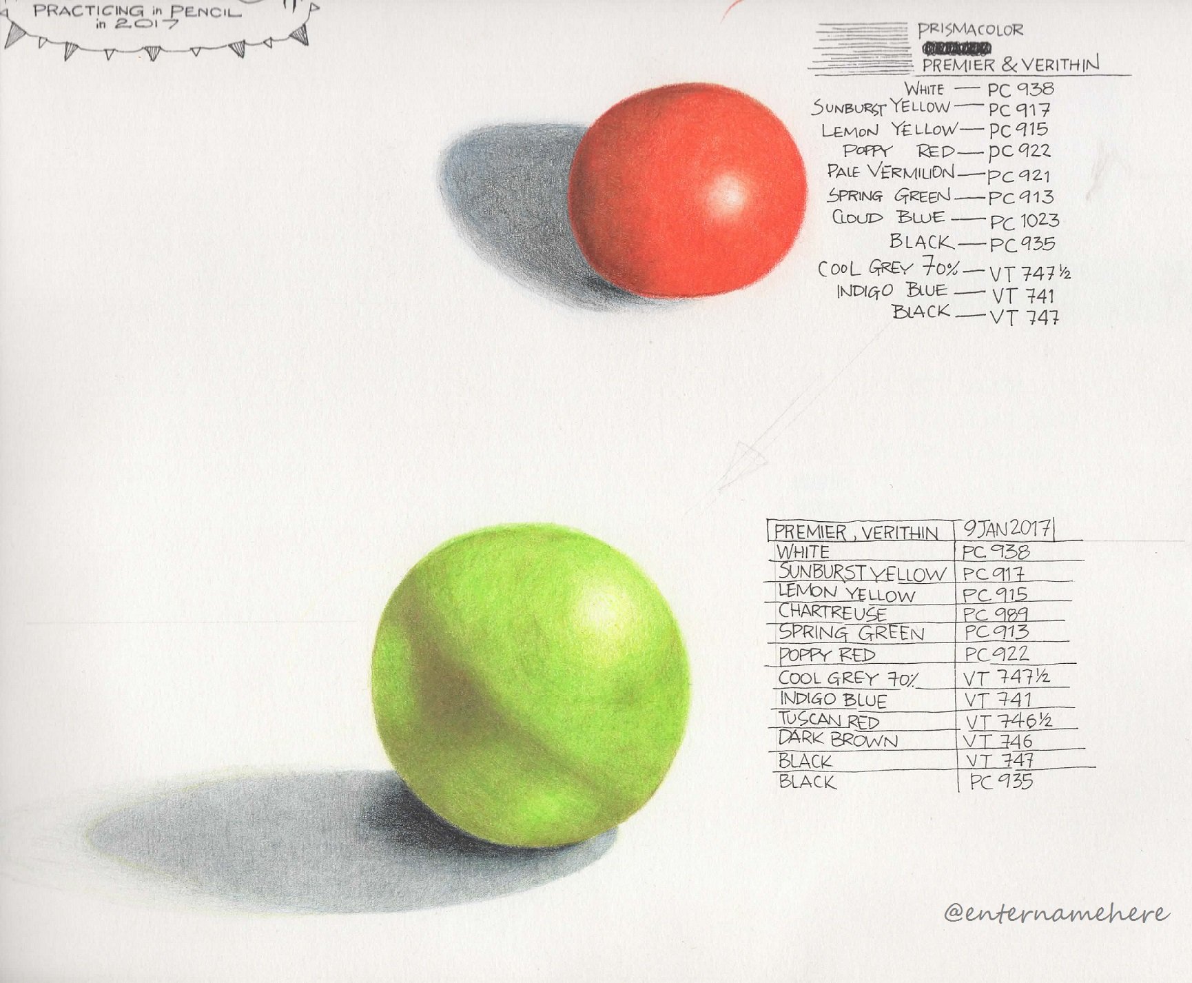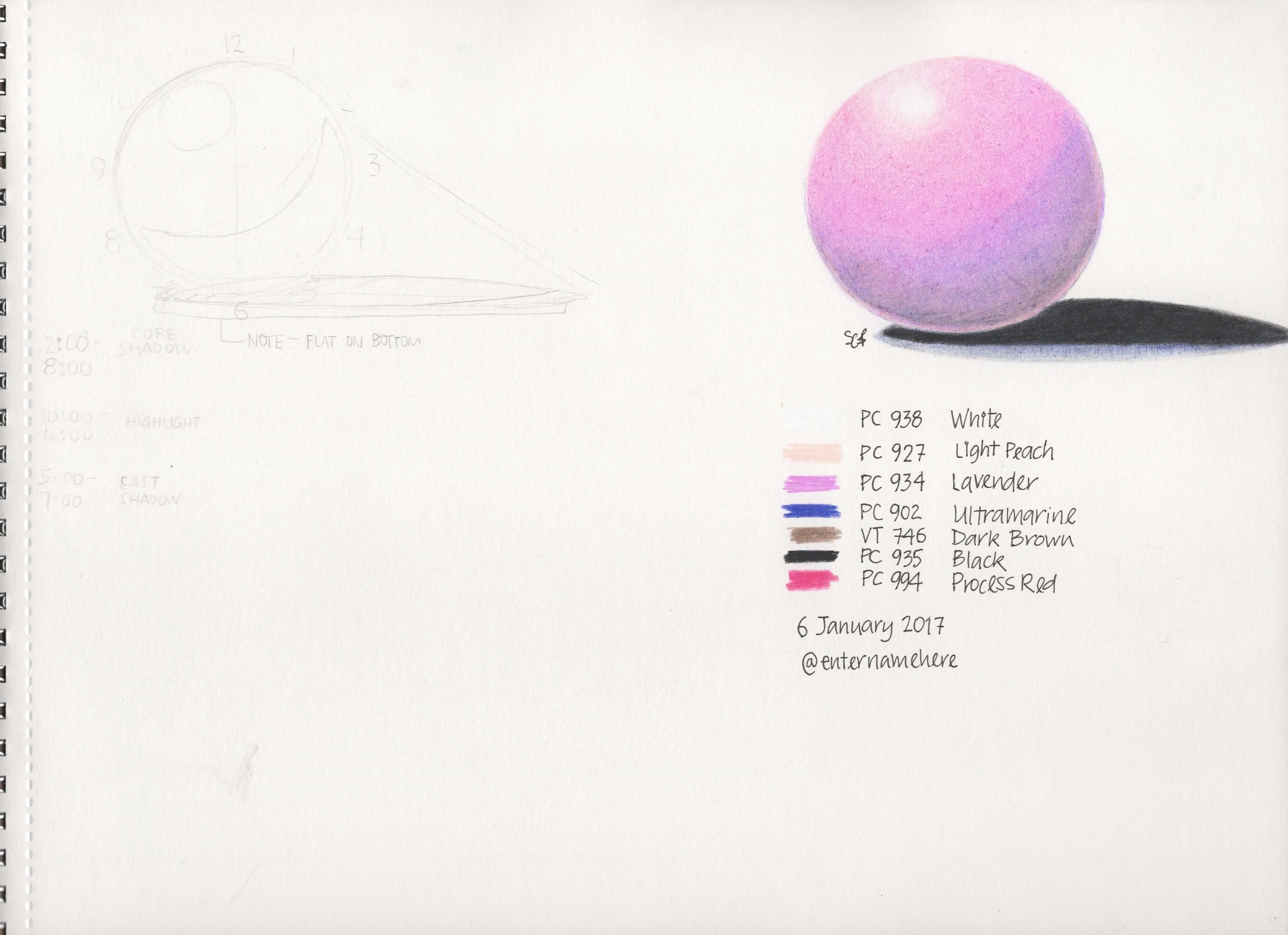On the left is just a quick reference I sketched out in graphite - difficult to make out in the pic. On the right is an example of putting the reference to use. The shadow isn't quite right, but I'm very satisfied with the smoothness in the shading of the sphere.
