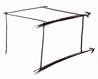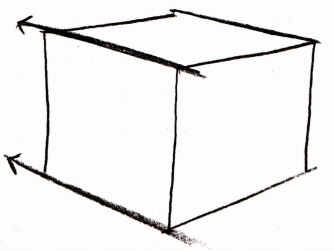 Draw the sides of the cube using two vertical lines. Vertical, straight lines from top to bottom without tilting.