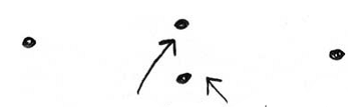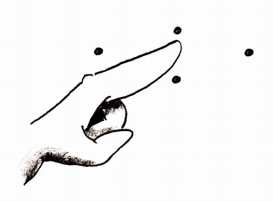 Place your finger between the points using your other hand. Then draw a point above and below the finger, as shown in the figure.
